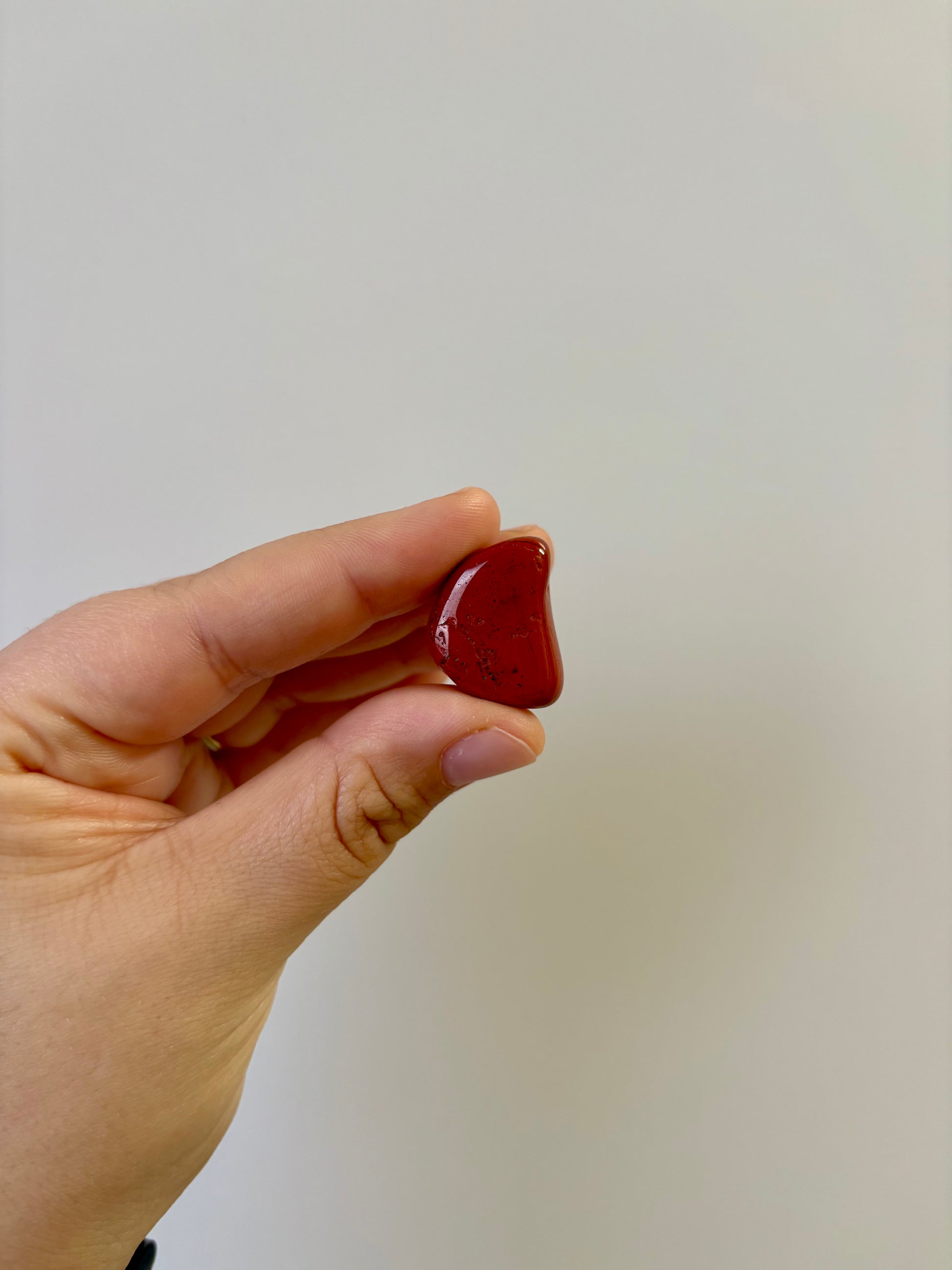Rode Jaspis trommelsteen is een krachtige edelsteen met warme roodbruine tinten en een glad, gepolijst oppervlak, waardoor hij prettig in de hand ligt. Elk exemplaar is uniek en straalt een aardse, stabiele energie uit.