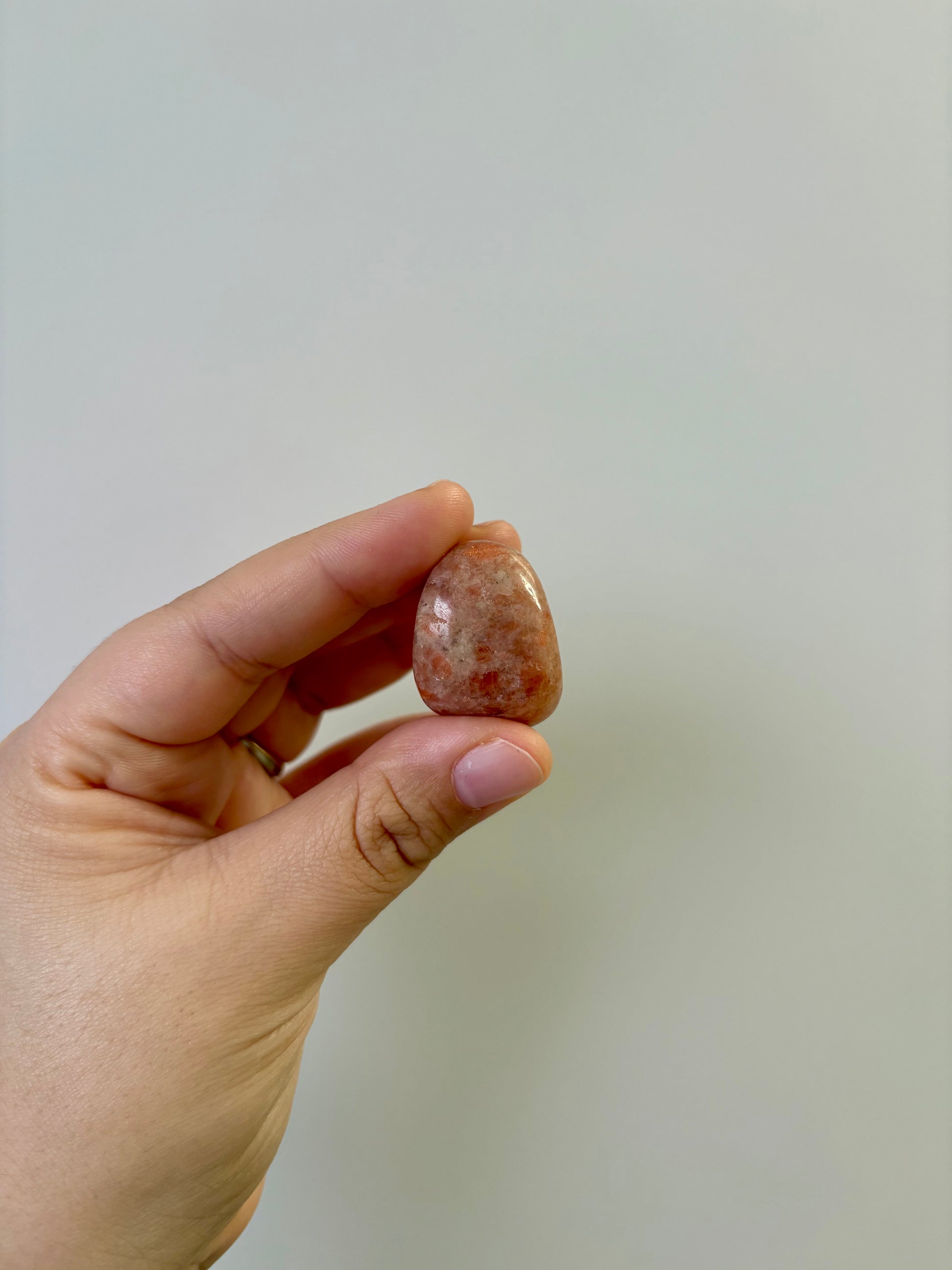 Zonnesteen trommelsteen is een warme, sprankelende edelsteen met oranje tot goudkleurige tinten en een subtiele glans. Het gladde, gepolijste oppervlak zorgt ervoor dat de steen prettig in de hand ligt en makkelijk bij je te dragen is. Elk exemplaar is uniek en straalt een zonnige energie uit.