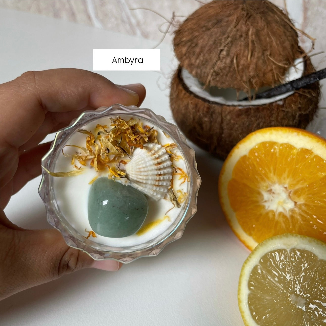Deze heerlijk geurende kaars is gemaakt van milieuvriendelijke en duurzame sojawas, voor een schone én gezonde brandervaring. De geuren zijn samengesteld uit biologische essentiële oliën en gecombineerd met een bijpassende edelsteen. Verwijder vóór het aansteken altijd de decoratie, zoals gedroogde bloemen en de edelsteen. 100 ml / 25 branduren